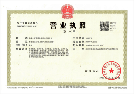 北京中研众诚检测技术有限公司于2019年经北京市顺义区市场监督管理局正式批准依法注册成立,